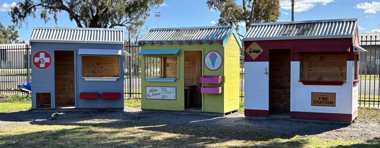 - various outdoor play spaces including a sandpit, play equipment and Finley PS Tiny Town